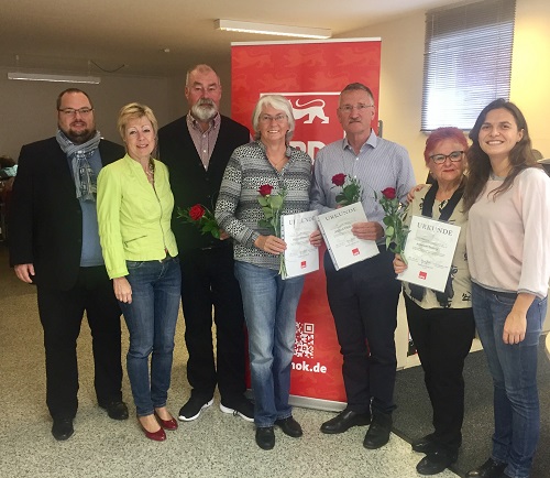 Seit je 25 Jahren sind Anneliese Ludwig und Marga Riemann Mitglieder der SPD. Jeweils 30 Jahre Mitgliedschaft können Anton Geier und Hartmut Landhäuser vorweisen. Sulejmani-Hoppe dankte den beiden Damen und den beiden Herren für ihre Treue und ihre aktive Unterstützung und Arbeit innerhalb des Ortsvereins Mosbach. In einem kurzen Resümee erläuterten die Geehrten ihre Beweggründe für den Eintritt in die SPD, formulierten Wünsche und Kritik und lobten die Gemeinschaft innerhalb des Ortsvereins.