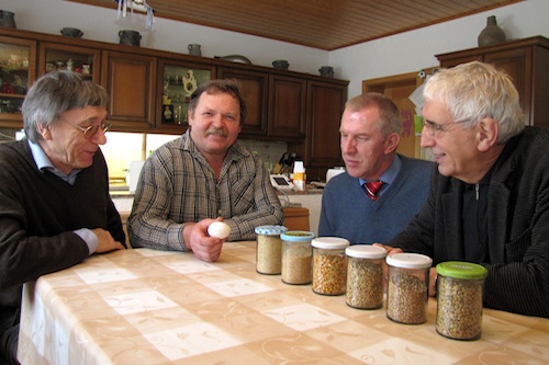 Von den Futterpflanzen zum Ei: Dr. M.C. Göring, J. Graßer und MdL G. Nelius hörten mit Interesse, welche große Sorgfalt Landwirt H. Reinmuth (2.v.l.) walten lässt.