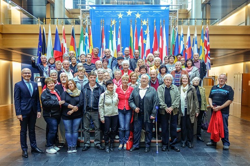 Für den restlichen Tag stand die europäische Tagespolitik im Mittelpunkt. Zunächst hieß der baden-württembergische Europa-Abgeordnete Peter Simon (SPD) aus Mannheim die Delegation aus dem Odenwald willkommen. Er informierte in anschaulicher Weise auf welchen Feldern das europäische Parlament kompetent sei und Richtlinien beschließen und für alle EU-Staaten Verträge verbindlich beschließen könne, ohne die nationalen Interessen der Länderparlamente der 28 Einzelmitglieder zu übergehen und überflüssig zu machen. Dies sei gerade jetzt erst wieder bei den Verhandlungen zum Handelsvertrag mit Canada deutlich geworden. Auf entsprechende Anfragen klärte der Europa-Abgeordnete Peter Simon auch darüber hinaus auf, warum so mancher Regelungsbedarf von den Europa-Parlamentariern aufgegriffen werde und dann in einer Richtlinie Rechtskraft für alle Mitgliedsstaaten erhalte.