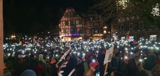 Binnen einer Woche konnte ein breites Bündnis für Demokratie und Menschenrechte ins Leben gerufen werden. Begonnen mit den demokratischen Jugendorganisationen im Neckar-Odenwald-Kreis hat sich ein Bündnis von über 30 Parteien, Organisationen und Initiativen zusammengefunden. Vom Bahnhof Mosbach West zogen die Demonstrationsteilnehmer friedlich in Richtung Marktplatz.