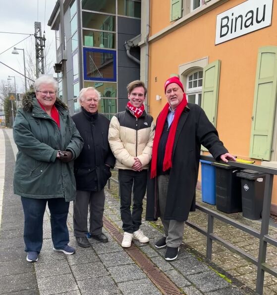 Vergangene Woche besuchte der SPD-Bundestagskandidat Philipp Hensinger die Gemeinde Binau und nutzte die Gelegenheit, mit Bürgerinnen und Bürgern ins Gespräch zu kommen. Gemeinsam mit Mitgliedern des Vorstands des SPD-Ortsvereins machte er einen Stopp am Bahnhof Binau, einem Ort, der sinnbildlich für erfolgreiche sozialdemokratische Verkehrspolitik in der Region steht.
