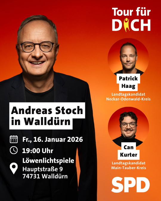 16.01.2026, 19:00 Uhr Tour für dich: Andreas Stoch in Walldürn